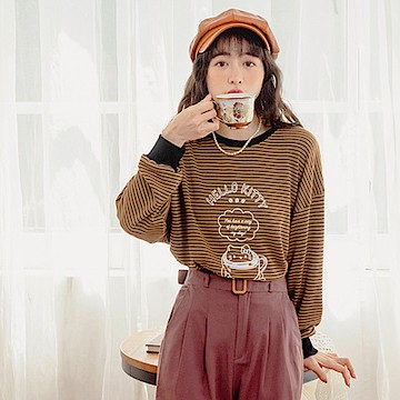 [REコンテナ] Black T-SHIRT復古黑貓印花休閑慵懶風圓領短袖T恤