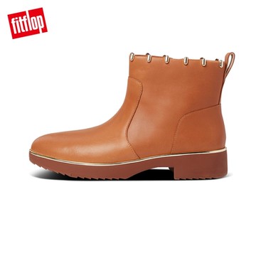 【FitFlop】F-MODE 水鑽飾邊皮革綁帶厚底切爾西靴-女(黑色)