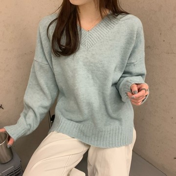 MOCO韓版chic甜美氣質V領百搭毛絨感柔軟毛海毛毛針織毛衣