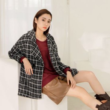 OB嚴選-毛呢格紋翻領落肩長袖外套《EA3186-》