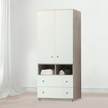 衣櫥【UHO】麥客2.7尺雙開二抽衣櫃-白橡色