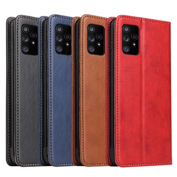 Fierre Shann 真皮紋 Samsung A52s/A52 5G (6.5吋) 錢包支架款 磁吸側掀手工PU皮套