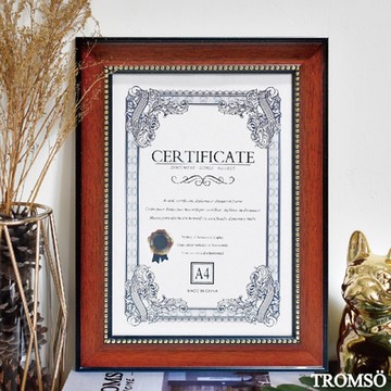 A4碳燻柚木紋證書框(單金)
