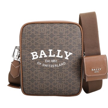 BALLY Bhenn 老花帆布直方斜背包(咖棕色)