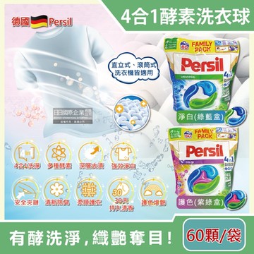 德國Persil-新一代4合1全效酵素去污除臭亮白護衣洗衣膠囊60顆/袋(洗衣球補充包,直立式/滾筒式洗衣機皆適用)
