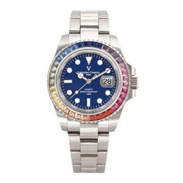 Valentino Coupeau 范倫鐵諾 古柏 滿天星梯鑽水鬼腕錶(銀殻/彩虹鑽/藍面/鋼帶)