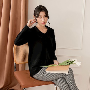 親膚系列.格紋花邊蝴蝶結點綴針織長袖上衣