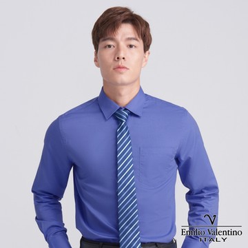 【Emilio Valentino】修身彈性素面長袖襯衫-藍