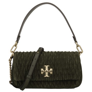 點我下載TORY BURCH Kira 金屬TB菱形紋麂皮鍊帶兩用包(森林綠)