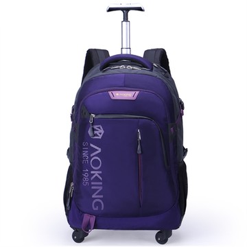 PUSH!旅遊休閒用品拉桿雙肩背包電腦包大容量輕型拉桿包20L萬向輪U57-2小號紫色