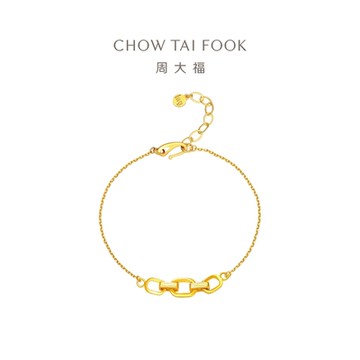 周大福 ING系列 復古風幾何黃金手鍊_計價黃金(鍊長17.5cm)