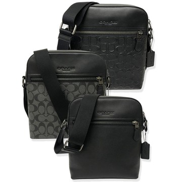 【COACH】Houston Flight Bag前拉鍊男款斜背包(浮雕黑)