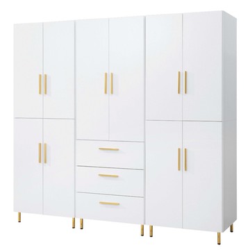 文創集 溫荷克輕奢白7.6尺十門三抽衣櫃組合-228x56x200cm免組