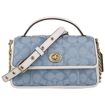 COACH Clutch 20 緹花布手提/斜背兩用包(水藍x白)小款