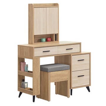 dayneeds Boise波夕木製梳妝台[附椅凳] 化妝桌/收納桌/掀鏡鏡台