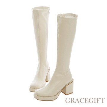 【Grace gift】長腿心機防水台粗跟長靴 米白