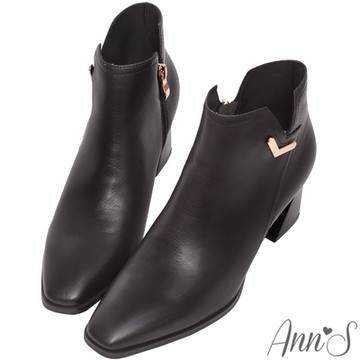 Ann’S姊就是時髦-顯瘦側V口羊皮真皮梯形方頭短靴7cm-黑