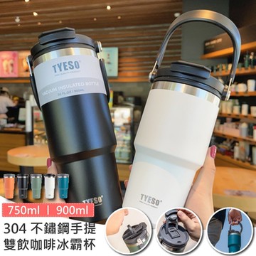 TYESO冰霸杯手提雙飲大容量304不銹鋼車載保溫杯帶吸管咖啡杯保冷