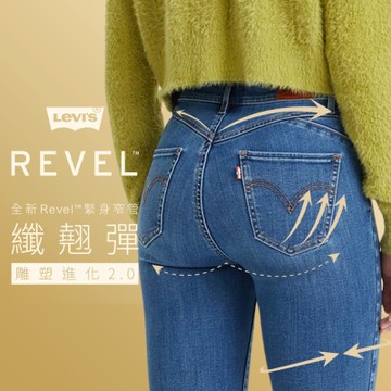 Levis 女款 REVEL高腰緊身提臀牛仔褲 / 超彈力塑形布料 / 精工中暈染水洗 / 貓鬚褲管 / 及踝款