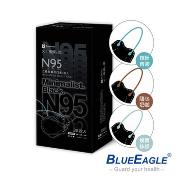 藍鷹牌 N95醫用4D立體型成人口罩 極簡黑 A款 三色綜合 30片x1盒