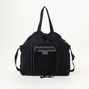 agnes b. Voyage 高磅數尼龍抽繩托特包(黑)