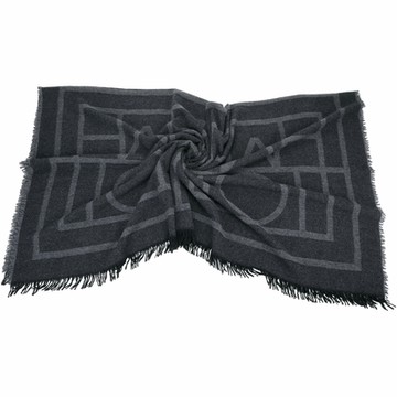 Toteme 條紋押字美麗諾羊毛深灰披肩 圍巾(140x140)