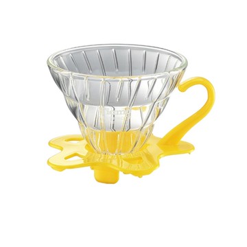 TIAMO V01 耐熱玻璃咖啡濾杯附咖啡匙+滴水盤-黃色(HG5356Y)