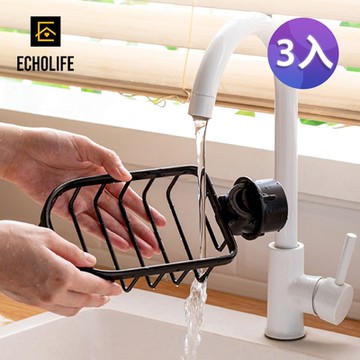 【Echolife】3入-水龍頭瀝水置物架 水槽置物架 菜瓜布架 抹布架 瀝水架