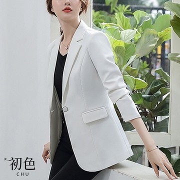 AB61歐美風無扣小西裝外套春秋開襟顯瘦含墊肩通勤干練正裝西服女