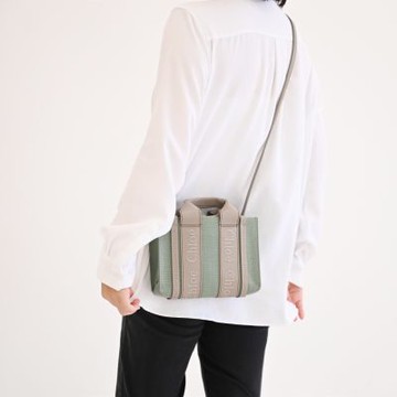 CHLOE Woody Mini系列經典LOGO織布帆布迷你款兩用托特包(綠/灰)