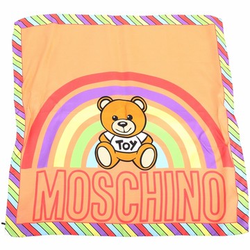 MOSCHINO 彩虹泰迪熊字母印花粉橘底真絲方巾 領巾(50x50)