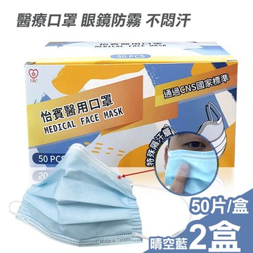 【怡賓】眼鏡防霧型醫療級三層口罩50片/盒x2(YB-S3AF)