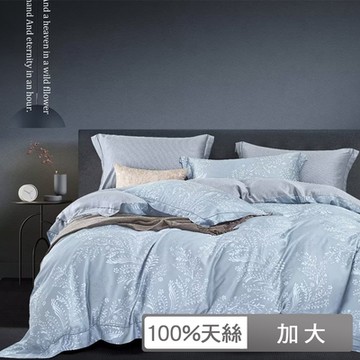 貝兒居家寢飾生活館 100%天絲四件式兩用被床包組 加大雙人 雨季幽羽藍