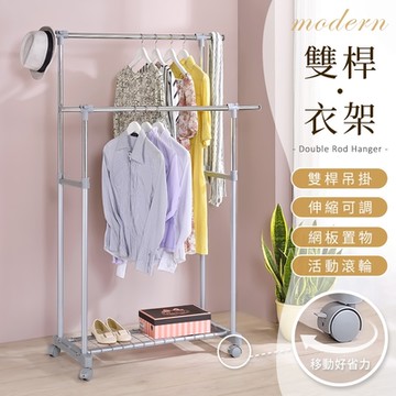 雙手萬能 不鏽鋼加粗雙桿置物衣架(曬衣架 晾衣架 衣桿)