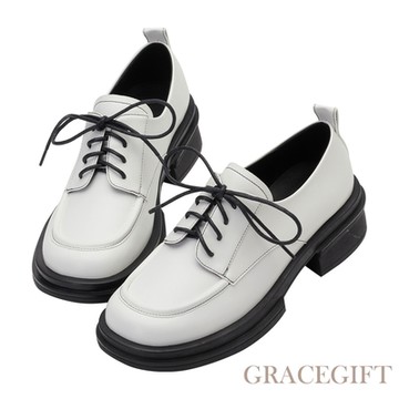 TAS 學院風真皮綁帶厚底牛津鞋 米色 #45071