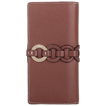 CHLOE 編織金屬環皮革直式翻釦長夾(棕木色)