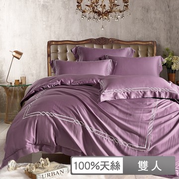 貝兒居家寢飾生活館 60支100%素色刺繡四件式兩用被床包組 裸睡系列 古典款 雙人 江戶紫