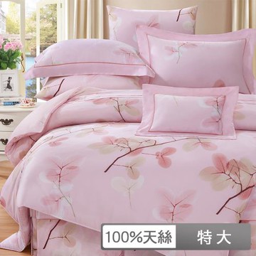 貝兒居家寢飾生活館 100%天絲四件式兩用被床包組 特大雙人 卉影粉
