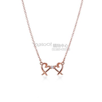 Tiffany&Co. 蒂芙尼 loving heart雙心鑲鑽石玫瑰金項鍊