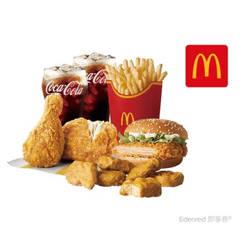 麥當勞大麥克+勁辣鷄腿堡+麥克鷄塊6塊+薯條(大)+可樂(中)*2好禮即享券