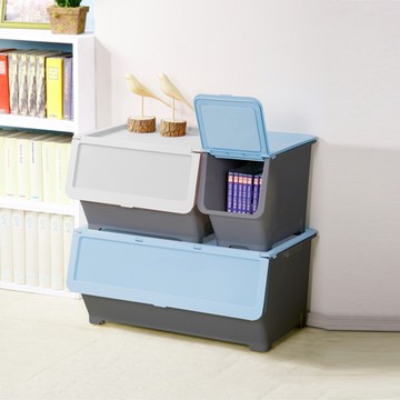 粉彩河馬口前掀滑蓋收納箱(附造型貼紙)-M-4入 冰川藍