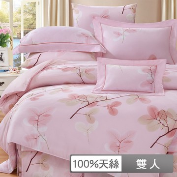 貝兒居家寢飾生活館 100%天絲四件式兩用被床包組 雙人 卉影粉