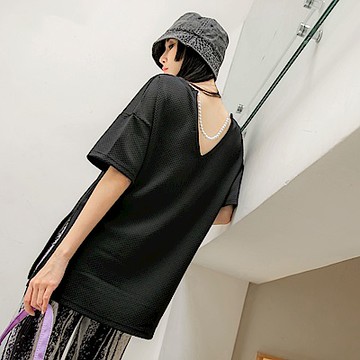 OB嚴選-純色挖背珍珠鍊側開衩落肩上衣