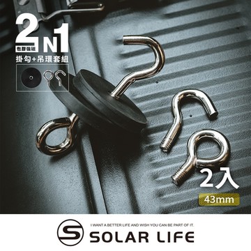 Solarlife 索樂生活 防刮包膠強磁掛勾 43mm/2入+吊環套組 2in1.強力磁鐵 露營車用 強磁防刮 車宿磁鐵 吸鐵磁鐵