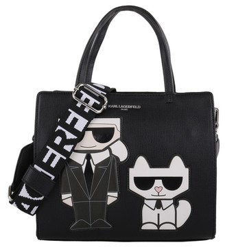 【KARL LAGERFELD】MAYBELLE IKONIK KARL & CHOUPETTE經典真皮手提兩用包
