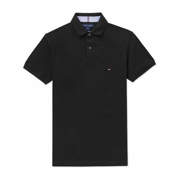TOMMY 熱銷刺繡Logo短袖Polo衫-黑色(二鈕扣/三鈕扣)