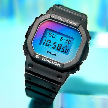 CASIO卡西歐 G-SHOCK 仲夏天空 彩虹玻璃 方形電子錶DW-5600SR-1 黑色