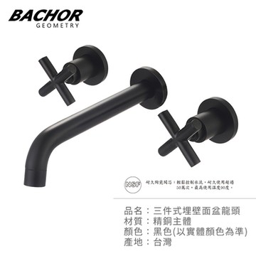 BACHOR 二件式壁式面盆龍頭(黑色)牆面未完成前安裝-無安裝 Y-33110BK