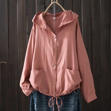 高級感奶橘色亞麻小立領襯衫女2023新款寬松天絲棉麻防曬上衣外套