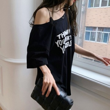 十字架梵文印花寬松長款吊帶背心女春夏內搭洋氣打底無袖T恤上衣